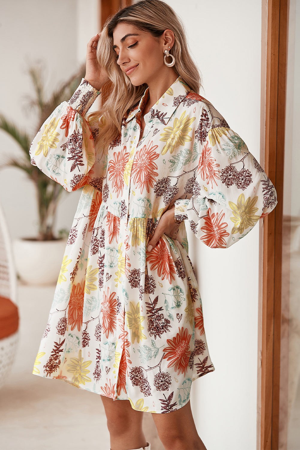 SAGE + FIG Floral Collared Neck Half Sleeve Mini Shirt Dress