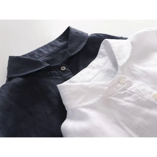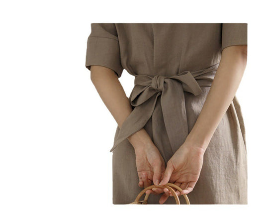 Cotton Linen Mid Length Loose Long Sleeve Dresses