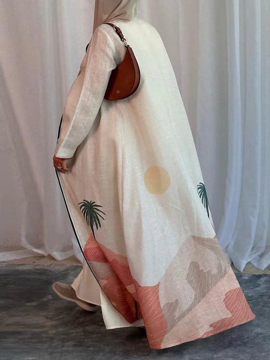 Long skirt large hem linen dress loose long-sleeved cotton linen skirt