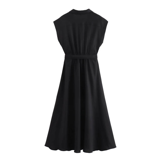 Summer Dress Chic Loose Swing Sleeveless Mid-length Cotton Linen Long Dress Sleeveless High Waist Women Runway Dress