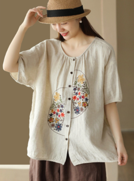 Multicolour V Neck Half Sleeve Boho Floral Blouse