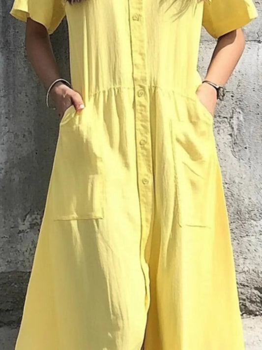 Devine Collared Neck Short Sleeve Midi Shirt Dress