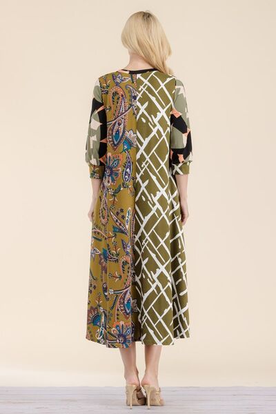 Celeste Full Size Paisley Contrast Tent Midi Dress Plus Size