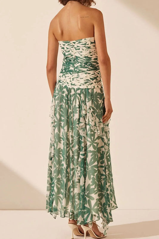Guacamole Green Abstract Print Striped V-Neck Mini Dress