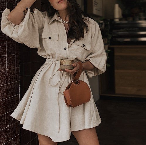 Cotton Linen Mid Length Loose Long Sleeve Dresses