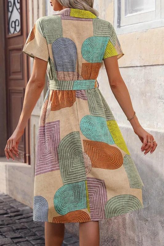 And The Why Square Neck Puff Sleeve Geo Printed Mini Dress